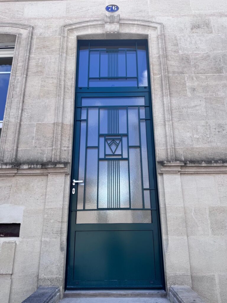 - Porte d’entrée en métal avec double vitrageMétallier Bordeaux réalise une porte en métal avec isolation sur mesure pour l’un de ses clients à Bordeaux